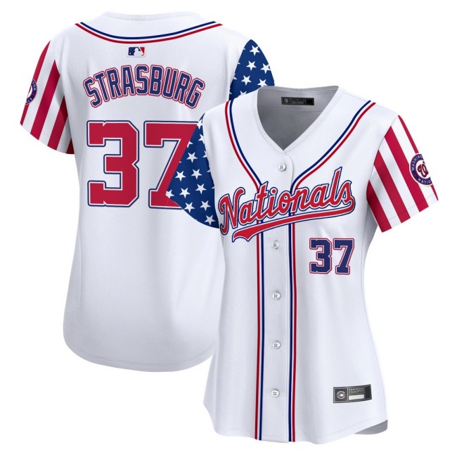 - Women's Nationals Nike #37 Stephen Strasburg White 2025 Independence Day MLB Baseball Limited Jersey - All Stitched