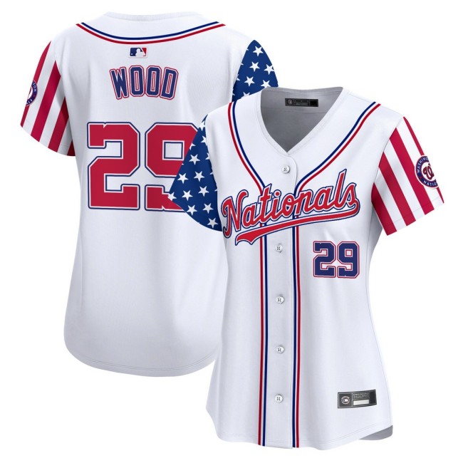 - Women's Nationals #29 James Wood Nike White 2025 Independence Day MLB Baseball Limited Jersey - All Stitched