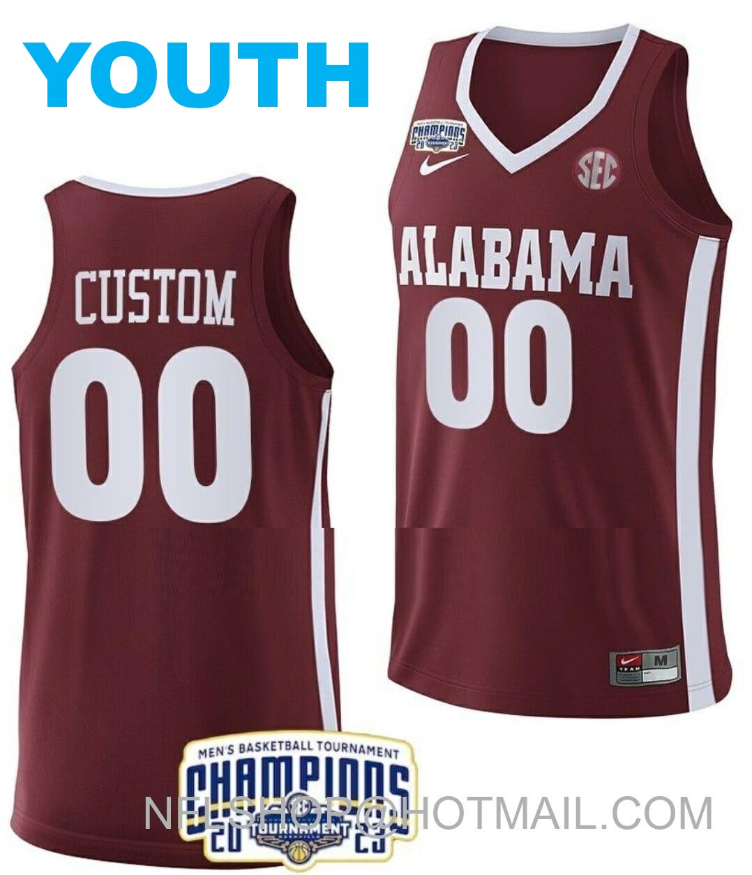 - Youth Custom Nike Alabama Crimson Tide Jersey Name And Number NCAA SEC Champs College Basketball Crimson