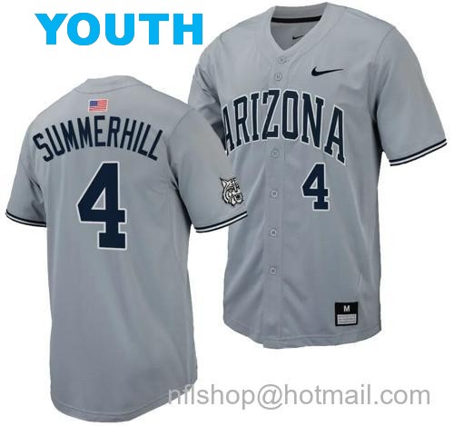 - Youth Brendan Summerhill Jersey #4 Arizona Wildcats Replica Baseball Full-Button Gray91