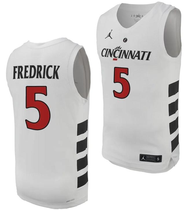 - Men's CJ Fredrick Jersey #5 Cincinnati Bearcats College Basketball Replica 2023-24 White