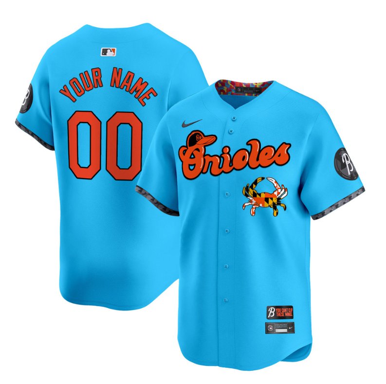 - Custom Baltimore Orioles Jersey Maryland Blue Crab Vapor Premier Limited Stitched Light Blue