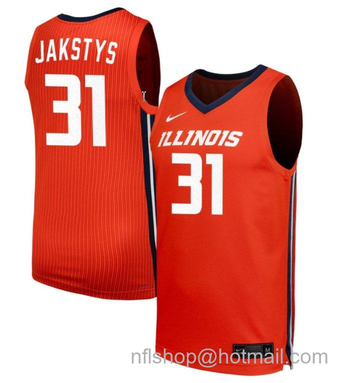 - Men's Illinois Fighting Illini Jason Jakstys #31 NIL Basketball Orange Stitched Jersey