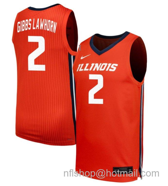 - Men's Illinois Fighting Illini Dra Gibbs Lawhorn #2 NIL Basketball Orange Stitched Jersey