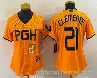 - Roberto Clemente Women's Pittsburgh Pirates #21 Number 2023 City Connect Stitched Jersey1 - Yellow