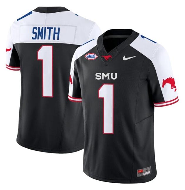 - Men's Nike Brashard Smith Jersey #1 SMU Mustangs Icy College Football Vapor Limited Black Alternate