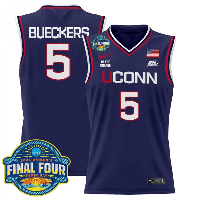 - Men's UConn Huskies #5 Paige Bueckers 2025 Women's National Champions Patch Lightweight Basketball Stitched Jersey Navy