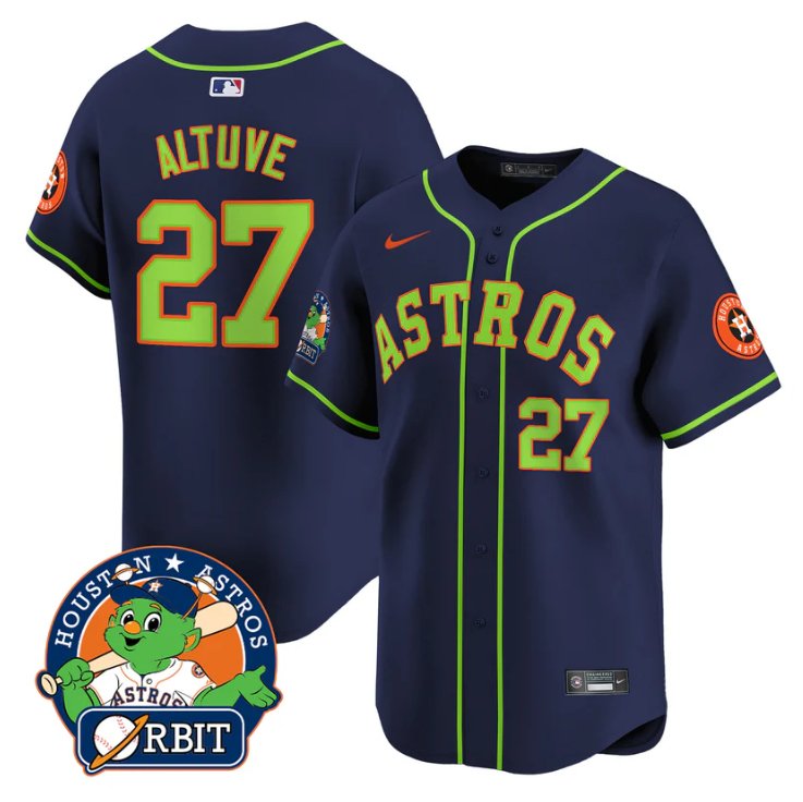 - Men's José Altuve Jersey #27 Astros Orbit Patch Vapor Premier Limited V2 Stitched Orange