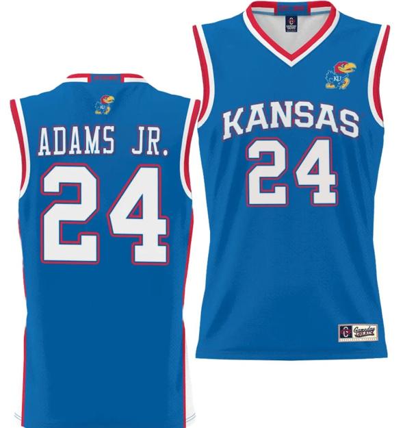 - Men's KJ Adams Jr Jersey #24 Kansas Jayhawks NIL College Basketball Lightweight Royal