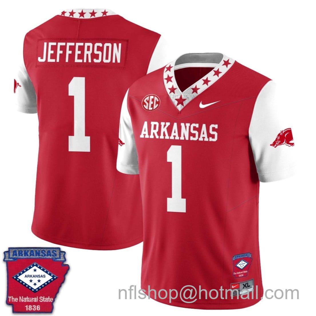 - Men's Nike KJ Jefferson Jersey #1 Arkansas Razorback Football Arkansas State Patched All Stitched Red Alternate