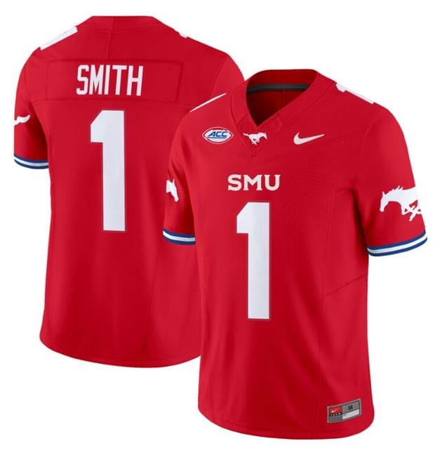 - Men's Nike Brashard Smith Jersey #1 SMU Mustangs Icy College Football Vapor Limited Red