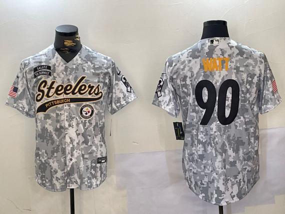 - Men's Pittsburgh Steelers #90 T.J. Watt 2024 Arctic Camo Salute to Service Stitched Baseball Jersey