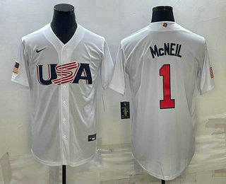 - Men's USA Baseball #1 Jeff McNeil 2023 White World Classic Stitched Jersey