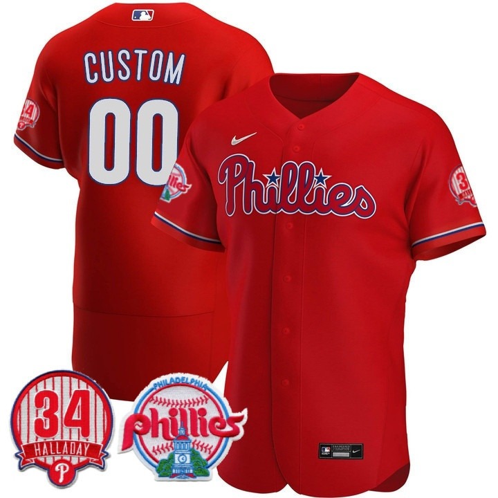 Custom Philadelphia Phillies JerseyHome » Customized Jerseys » Custom MLB Jerseys » Custom Philadelphia Phillies Jersey »Philadelphia Phillies Custom Red Cool Base Stitched Baseball Jersey - Roy Halladay #34 Patch