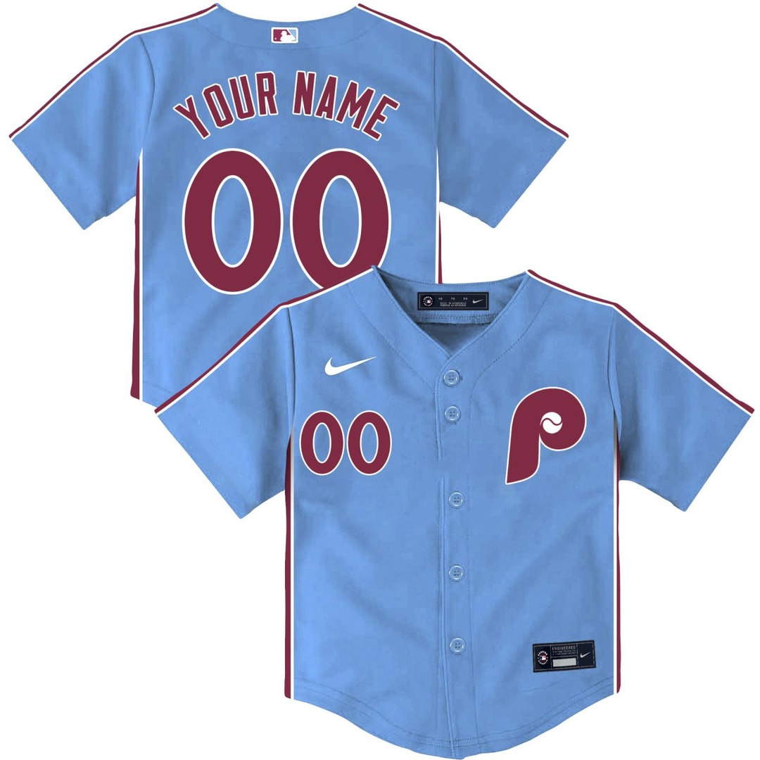 - Toddler's Philadelphia Phillies Baby Blue Custom Jersey - All Stitched