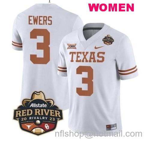 - Women's Quinn Ewers Jersey #3 Texas Longhorn Allstate Red River Vivalry Patch College Football White