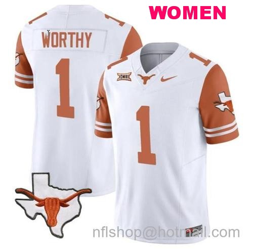 - Women's Xavier Worthy Jersey #1 Texas Longhorns Sugar Bowl Patch Vapor Football Orange Alternate