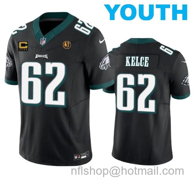 - Youth Philadelphia Eagles #62 Jason Kelce Black 2025 Super Bowl LIX Patch Vapor Untouchable Limited Stitched Football Jersey
