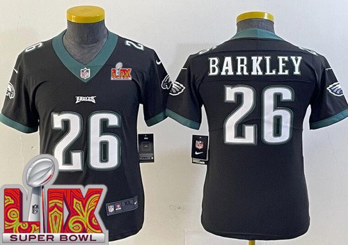 - Youth Philadelphia Eagles #26 Saquon Barkley Nike Limited Black Super Bowl LIX Vapor FUSE NFL Stitched Jersey